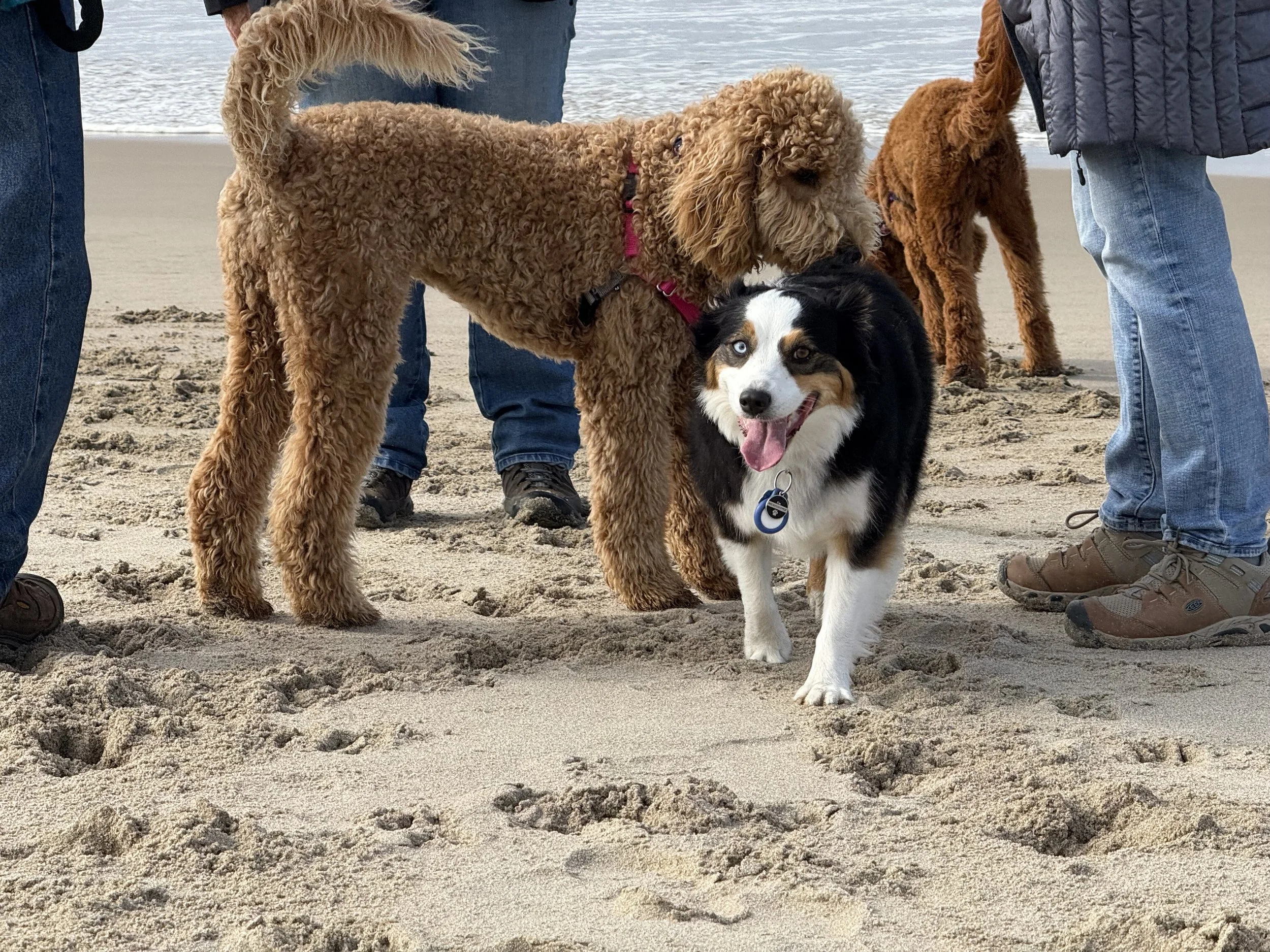 Rosie, Maple, and Cedar, about to enjoy some beach time.
