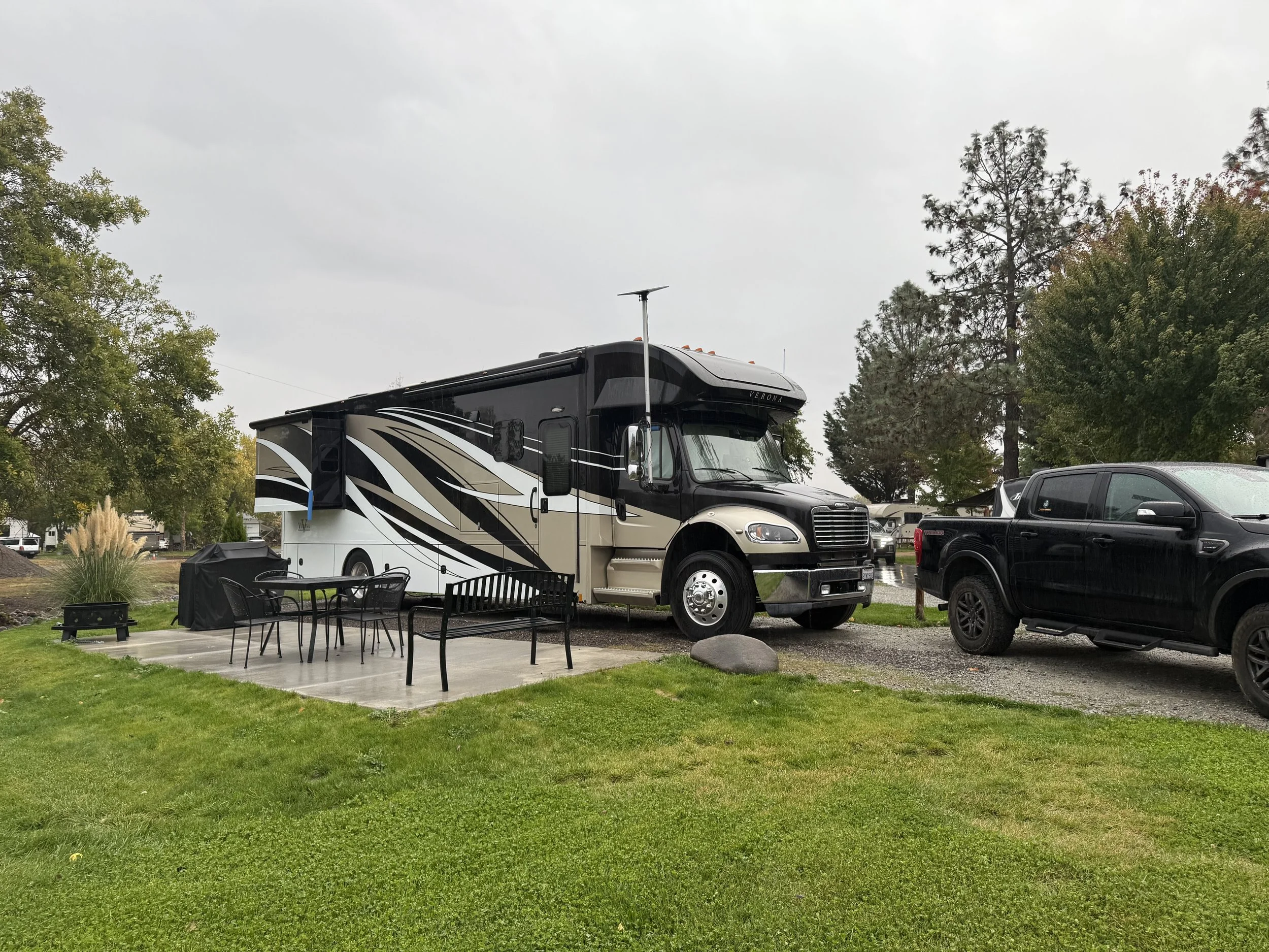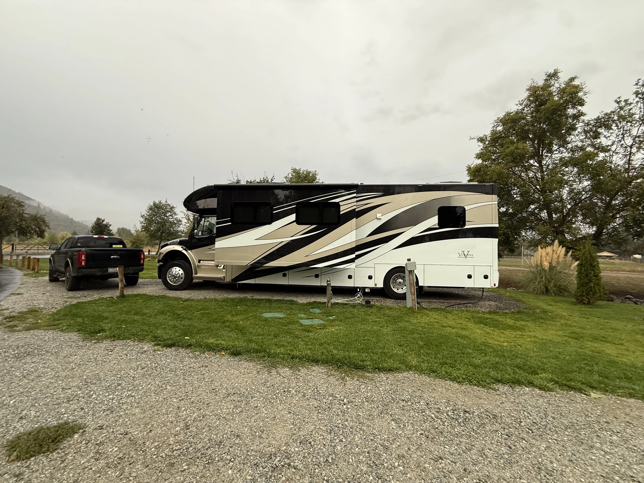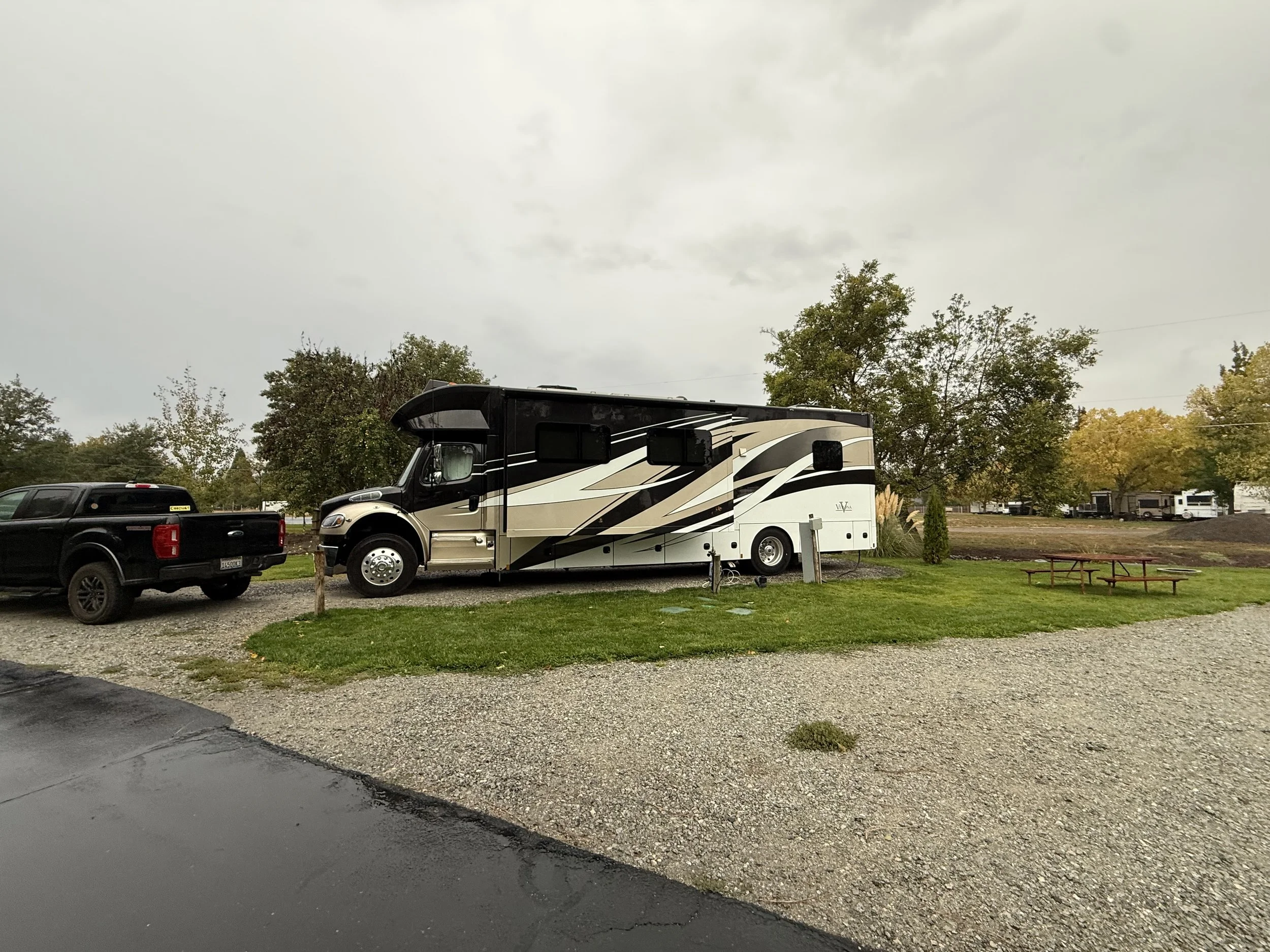 It was a bit rainy while we were at the Medford/Gold Hill KOA Journey.