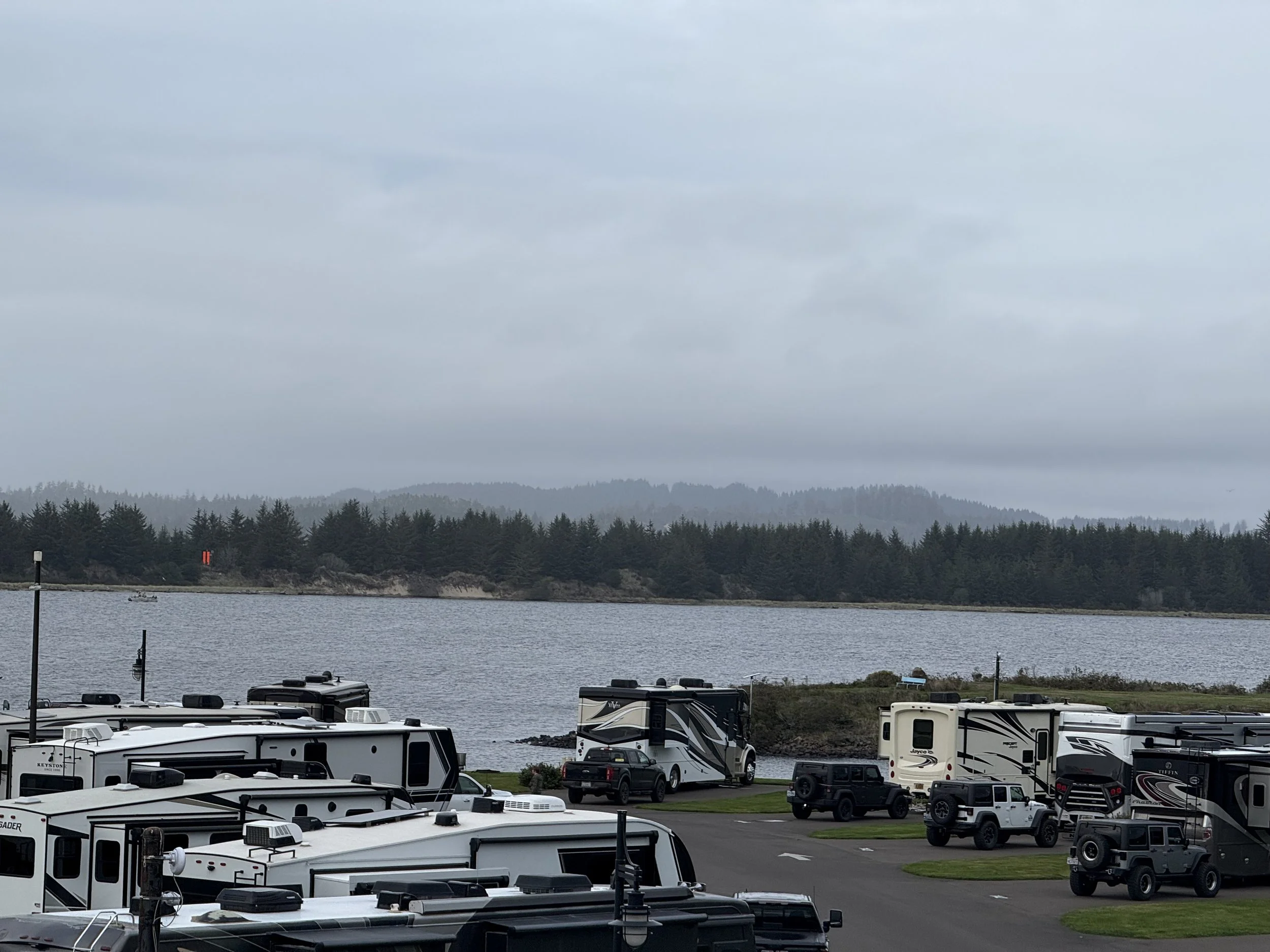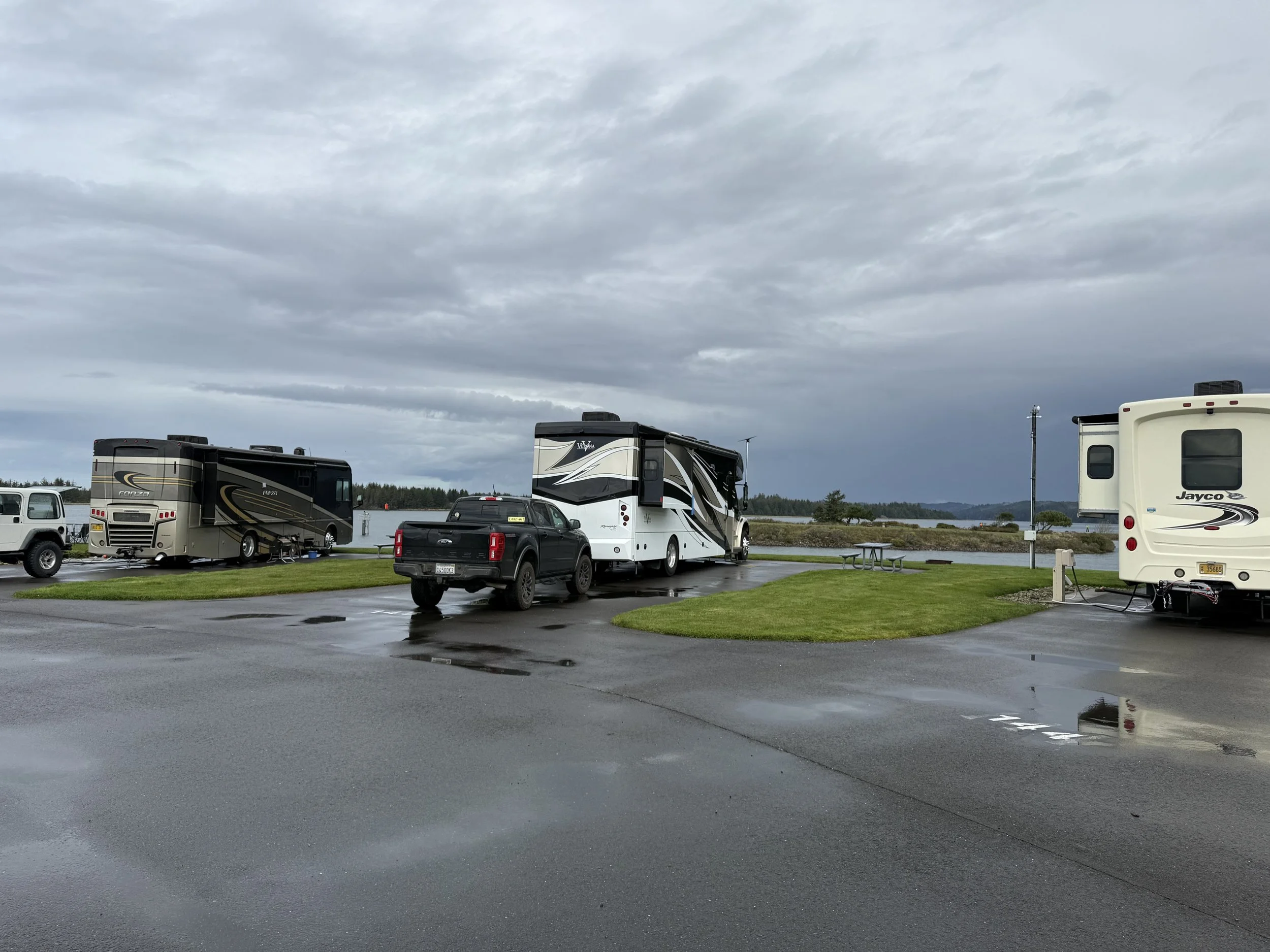 Even in the rain, the Winchester Bay RV Resort is beautiful.